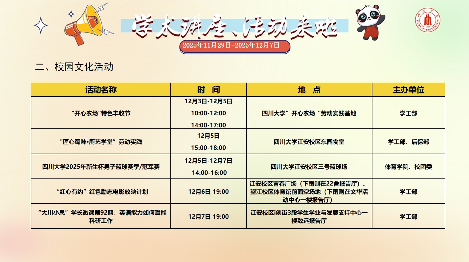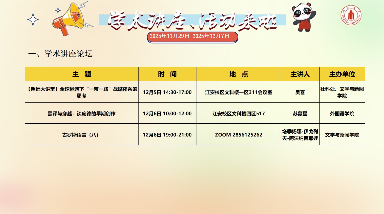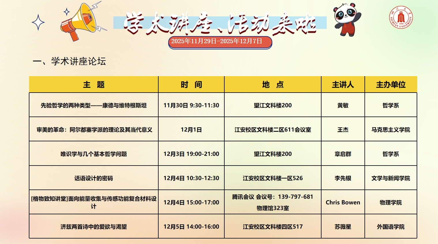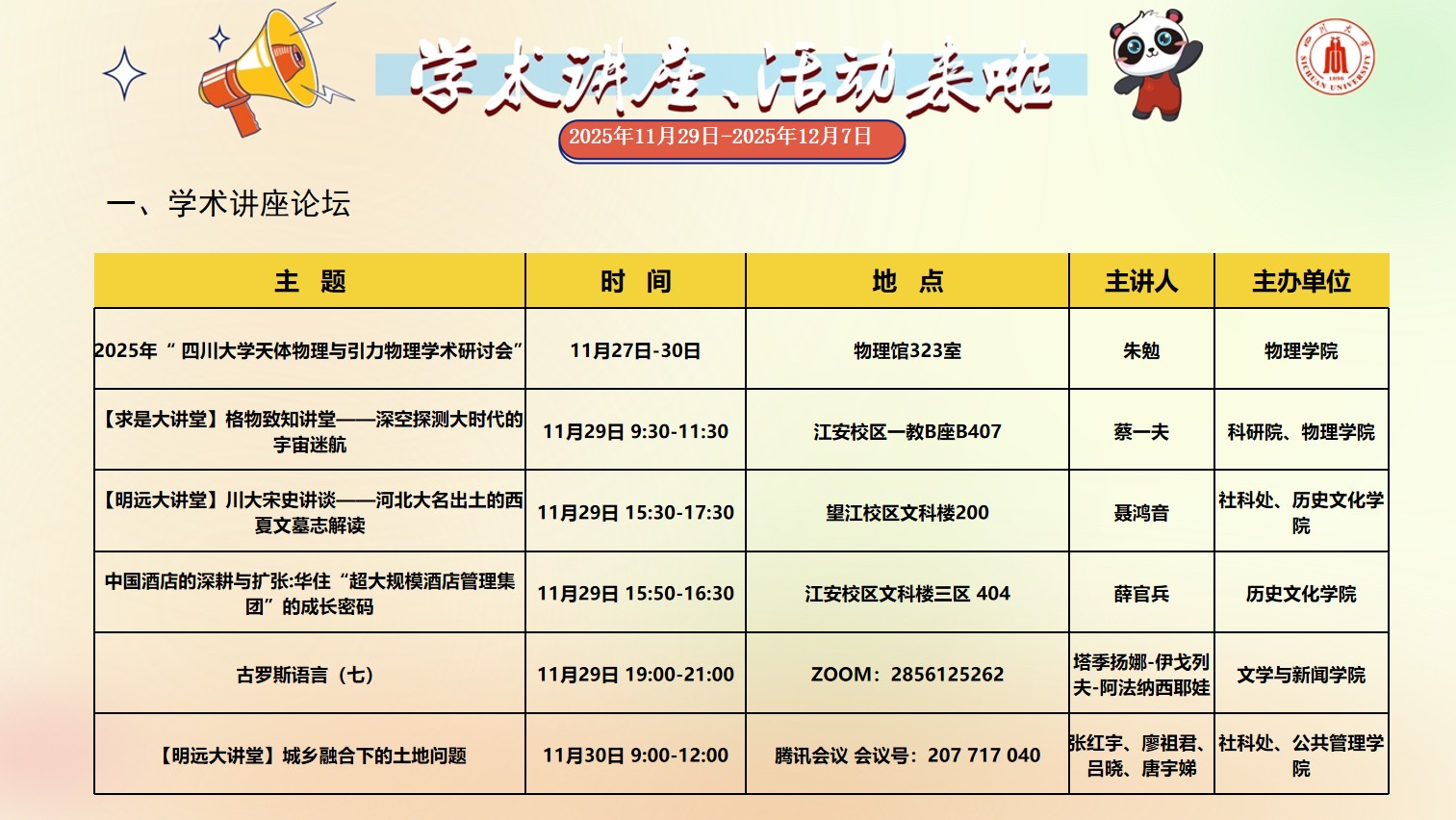 成人影视片 2025年11月29日-12月7日学术讲座和校园文化活动预告