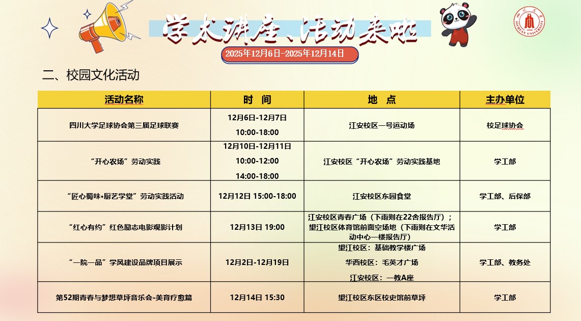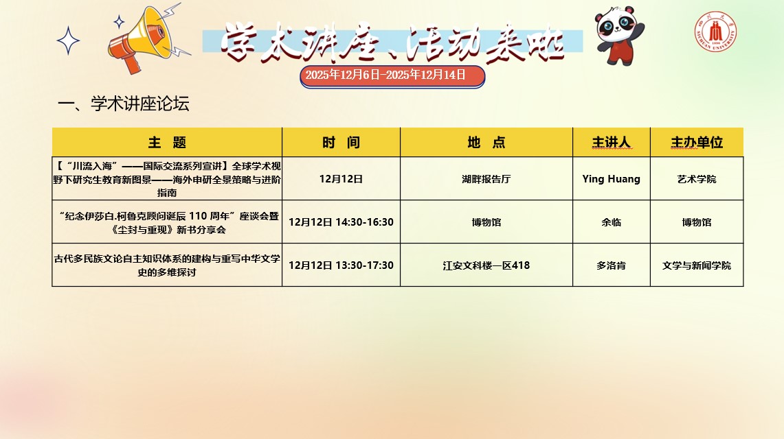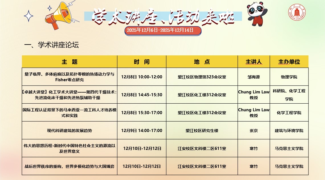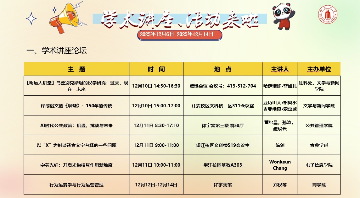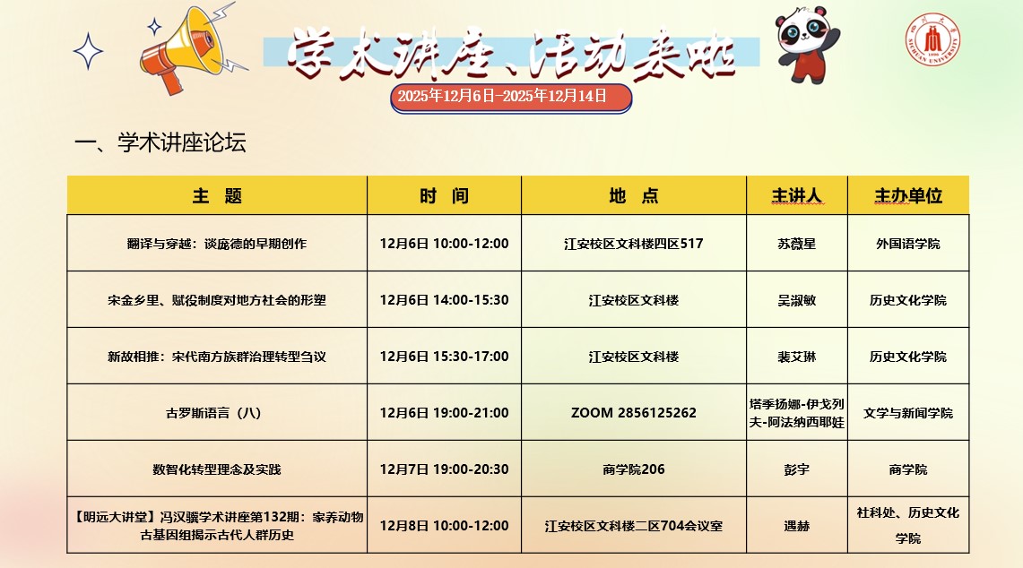 成人影视片 2025年12月6日-2025年12月14日学术讲座和校园文化活动预告