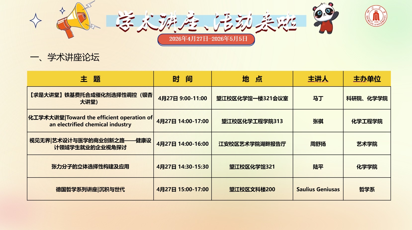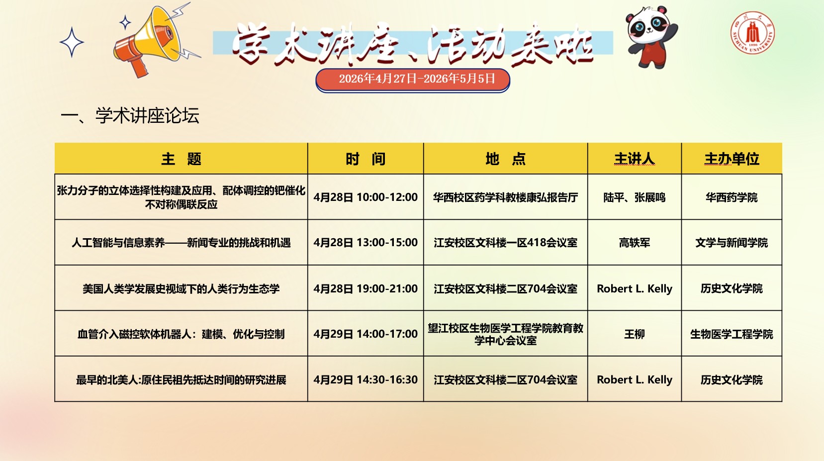 学术讲座与校园文化活动预告(2026年4月27日-2026年5月5日)