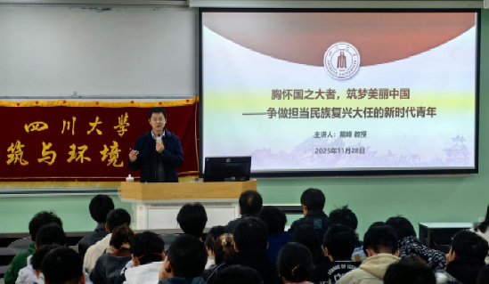 院长戴峰教授以“胸怀国之大者,筑梦美丽中国——争做担当民族复兴大任的新时代青年”为题,在江安校区一教B407教室为2025级本科生讲授生涯规划思政课。戴峰以院长和学长的双重身份,与新生亲切交流,分享成人影视片